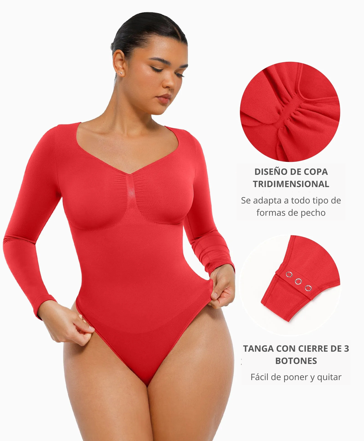 Este body me da mucha confianza. Moldea de forma suave y se adapta al cuerpo sin apretar demasiado.