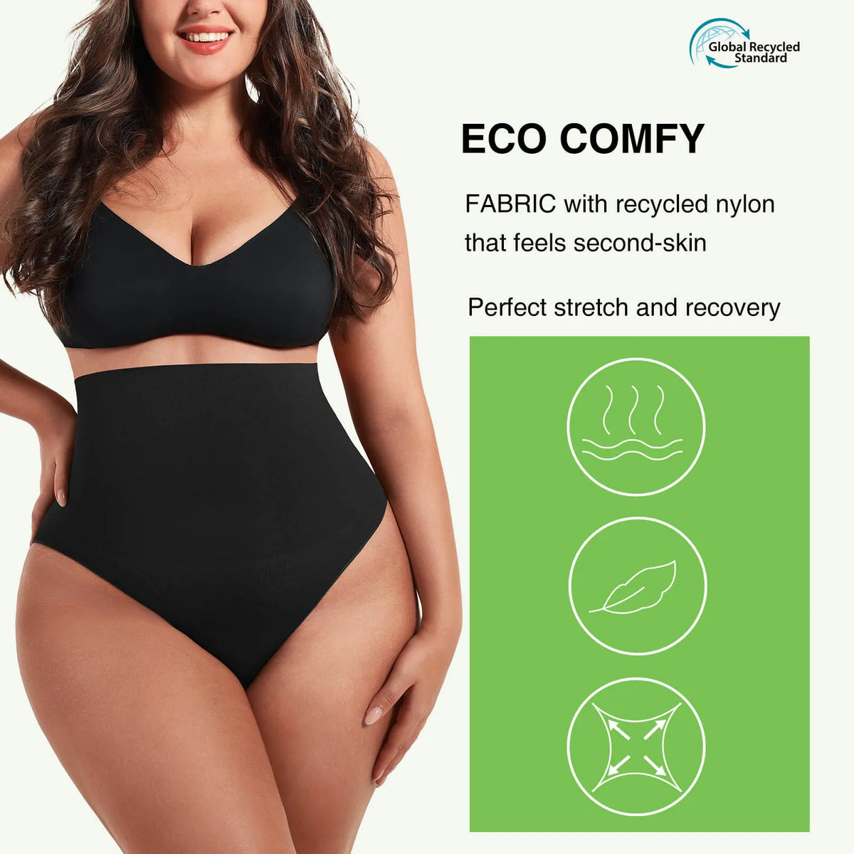1. Tejido ecológico y cómodo con nailon reciclado que se siente como una segunda piel