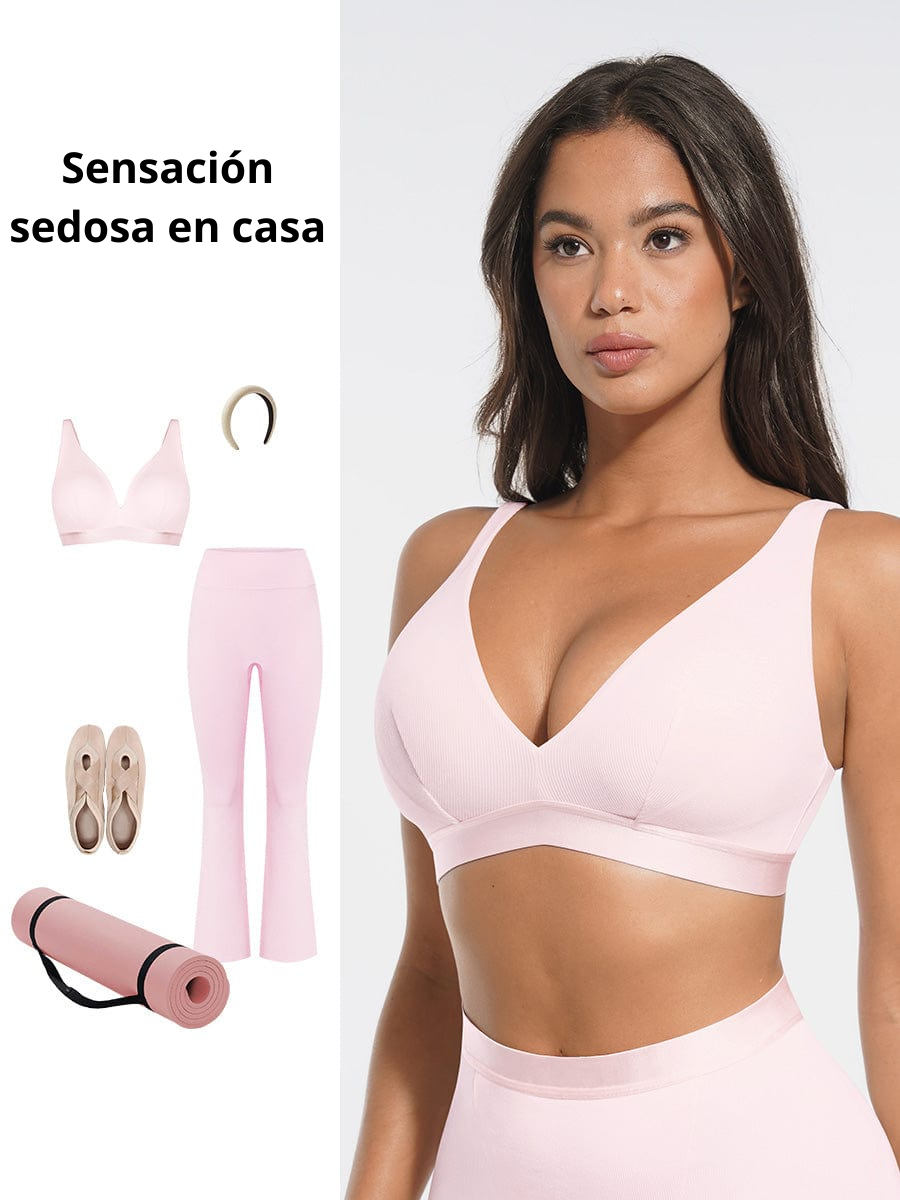 Bralette de canalé con escote en V profundo y almohadillas extraíbles para usar todo el día.