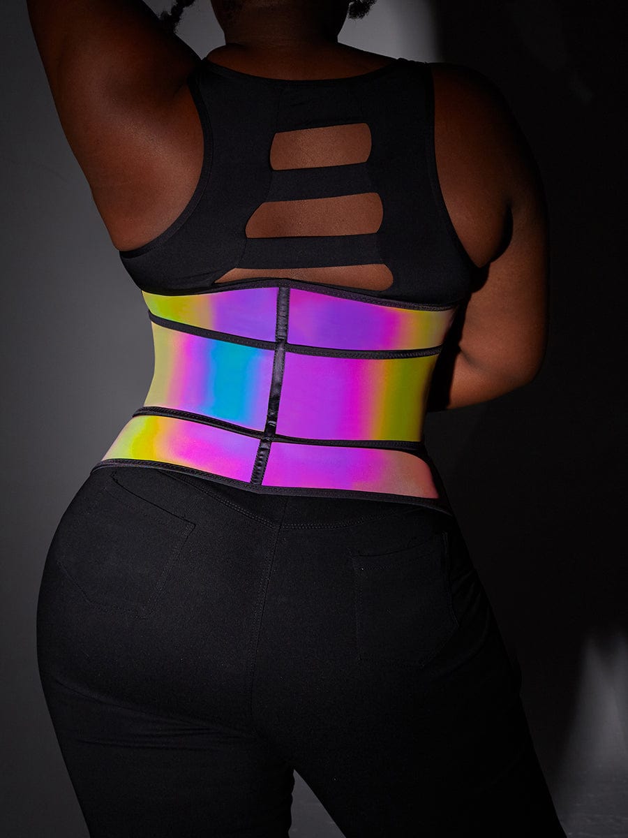 Faja moldeadora de cintura de látex reflectante arcoíris, marca privada